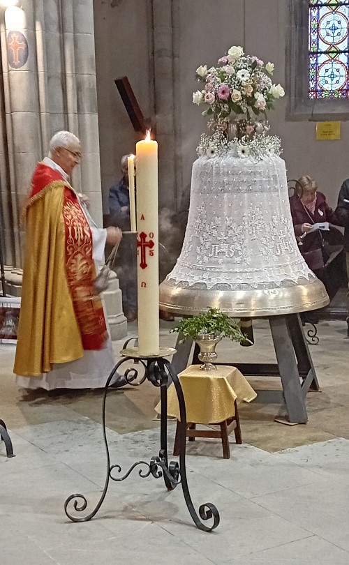 Notons lors de cette cérémonie la présence de MMes Lydie Barbaux, maire de Plombières-les-Bains et Véronique Marcot, vice-présidente du conseil départemental des Vosges, de Mrs Christophe Naegelen, député de notre circonscription et Jean Hingray, sénateur des Vosges. Ils furent invités à faire sonner la cloche tout comme l'ensemble de l'assistance, tandis que la chorale paroissiale emmenée par notre organiste Emmanuel Villeminey, interprétait le chant du Jubilé après celui du Laudate Dominum. Pendant ce temps, des dragées étaient offertes à toutes et tous comme le veut la tradition pour célébrer un tel moment festif.