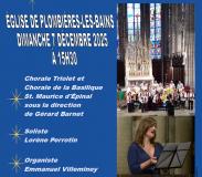 Concert de Noël à l'église de Plombières-les-Bains à 15h30 avec la Chorale Triolet et la Chorale de la Basilique St. Maurice d'Épinal dirigées par Gérard Barnet, Lorène Perrotin, soliste, Emmanuel Villeminey, organiste. Participation libre au profit de l'association pour la restauration de l'église de Plombières.